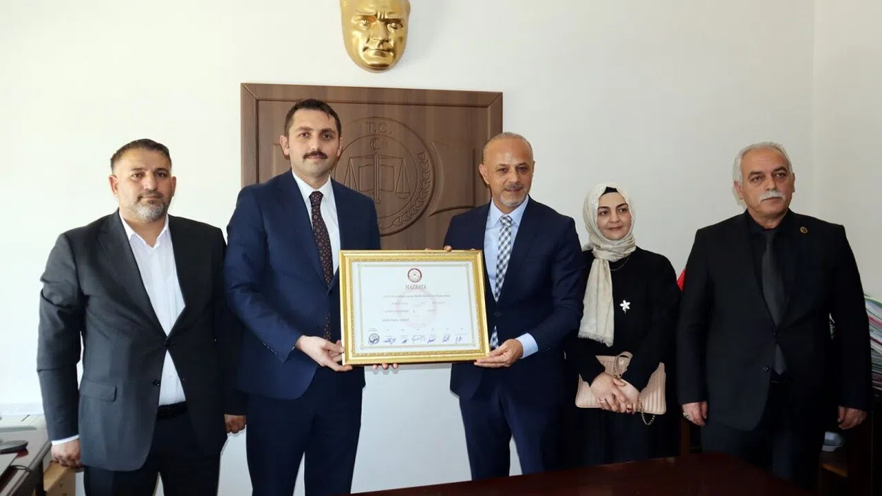 Afşin Adliyesi’nde düzenlenen törende Koray Kıraç’ın mazbatasını Hakim Yavuz Aktaş verdi.