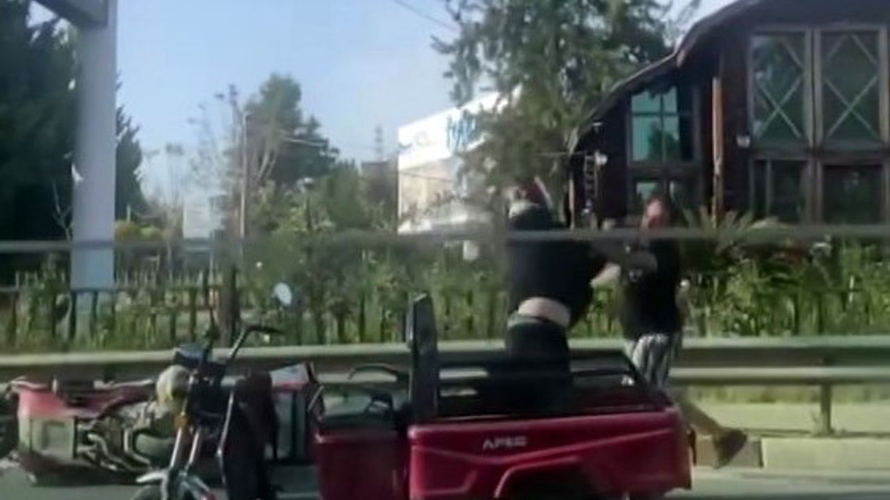 Görüntülerde iki sürücünün araçlarını durdurduktan sonra sözlü tartışmaya başladığı daha sonra da karşılıklı tekme ve yumrukların atıldığı görüldü. Kavga esnasında kurye olduğu tahmin edilen şahsın kaskının çıkarmadığı dikkat çekerken, çevreden geçen bir araçtan bir vatandaşın ‘Yapmayın’ dediği de görüntülerde yer aldı.