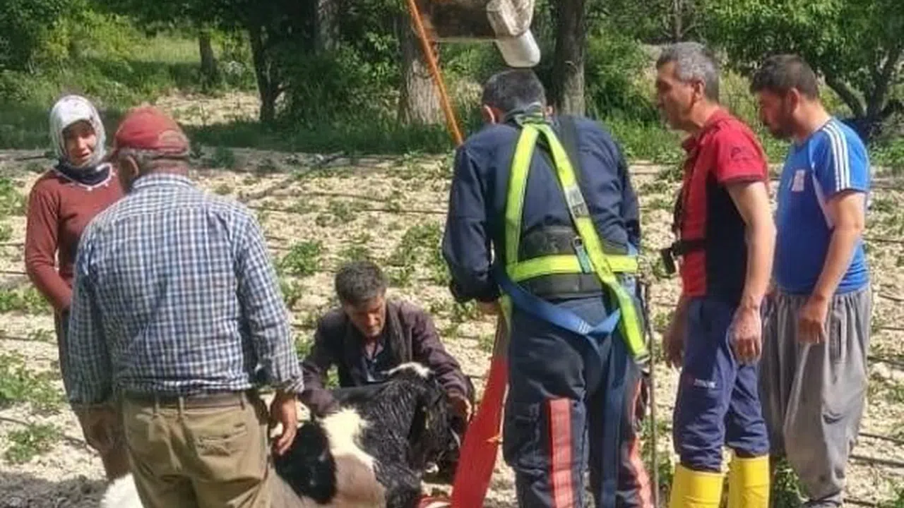 Mersin'in Gülnar ilçesinde ahırdan kaçarak 10 metrelik su kuyusuna düşen danayı itfaiye ekipleri kurtardı.
