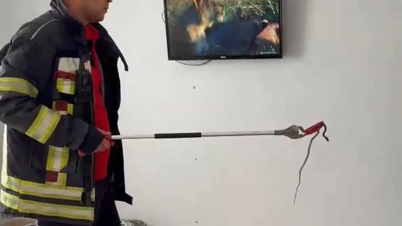 Mersin'de 2 gün önce zemin kattaki bir eve giren yılan, itfaiye erleri tarafından yakalanarak doğaya bırakıldı.