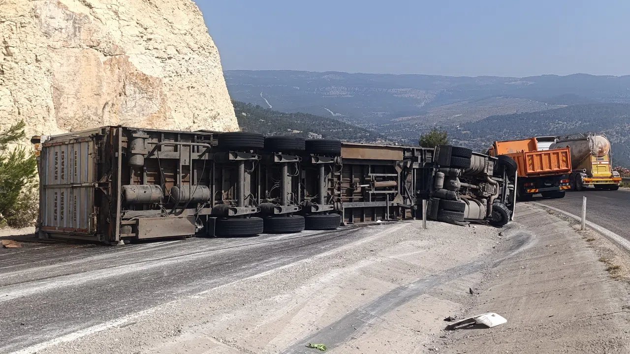 Tırın devrilmesiyle kapanan yol, aracın düzeltilip çekilmesiyle tekrar ulaşıma açıldı.