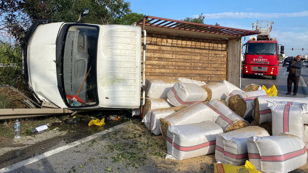 Kaza, saat 15.30 sıralarında Serik ilçesi Burmahancı Kavşağı yakınlarında meydana geldi. Recep K. (55) idaresindeki 07 CSH 62 plakalı saman yüklü kamyonet, seyir halindeyken sürücüsünün direksiyon hâkimiyetini kaybetmesiyle kontrolden çıktı. Araç, refüjdeki demir bariyerlere çarparak yan yattı. Kazanın etkisiyle kamyonetin kasasında bulunan saman balyaları yola savruldu.