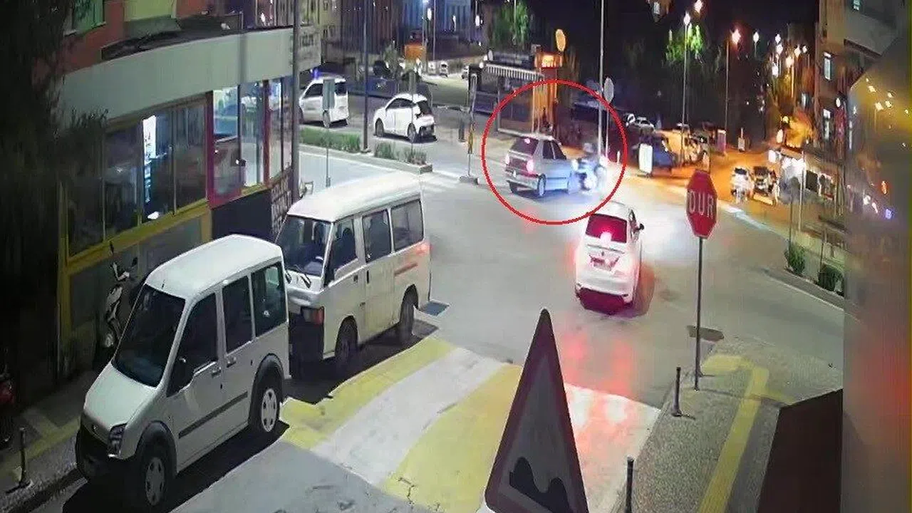 Kaza anı, olay yerindeki bir iş yerinin güvenlik kamerası tarafından saniye saniye kaydedildi. Görüntülerde, çarpışma anı, motosikletlinin havada takla atması ve yere düşmesi net bir şekilde görülüyor.