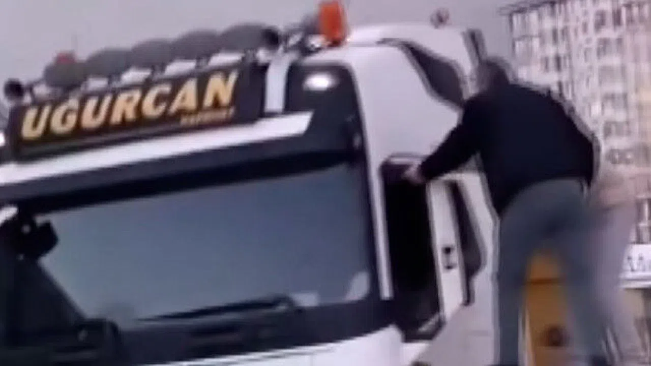 Arabanın tavanına çıkıp tır şoförünü dövdüler
