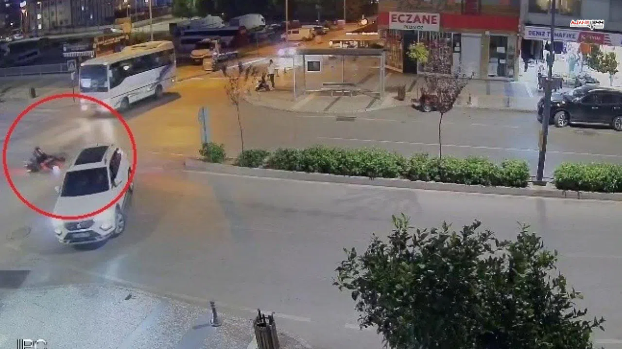 Devrilerek sürüklenen motosiklet sürücüsü yaralandı. Olay yerine gelen sağlık ekipleri, yaralıya ilk müdahalede bulundu. Motosiklet sürücüsü Ö.F.A., stabil hale getirilmesinin ardından ambulansla hastaneye nakledildi. Kazanın anları ise güvenlik kamerasına yansıdı.
