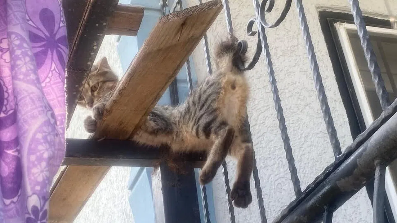 Hatay'ın Antakya ilçesinde balkonun demir korkuluklarına sıkışan kedi, itfaiye ekiplerinin müdahalesiyle kurtarıldı.