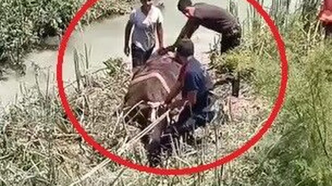 Hatay'ın Reyhanlı ilçesinde dere yatağına girerek bataklığa saplanan 3 büyükbaş itfaiye ekiplerinin müdahalesiyle kurtarıldı.