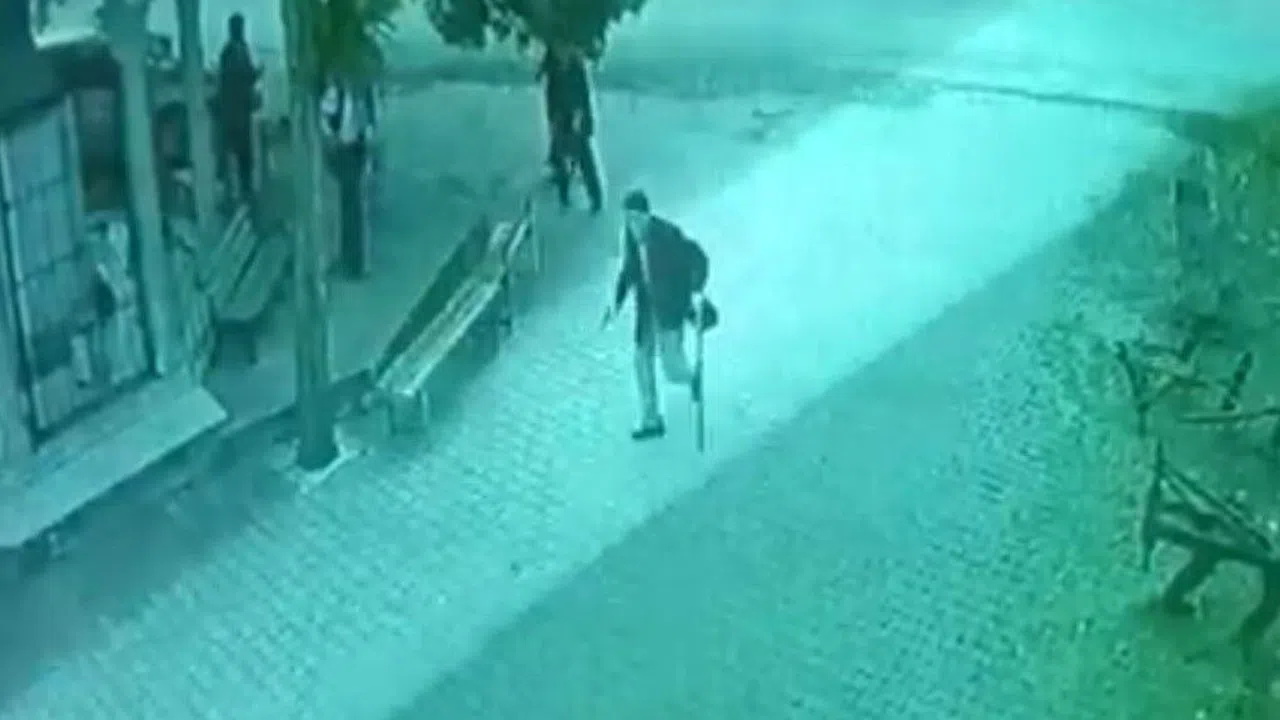 Bir elinde bastonu diğer elinde silahıyla köy meydanını basan yaşlı adam köylülere kabusu yaşattı. Olayda biri ağır olmak üzere 3 kişi yaralanırken, olay anına ait güvenlik kameraları ortaya çıktı.