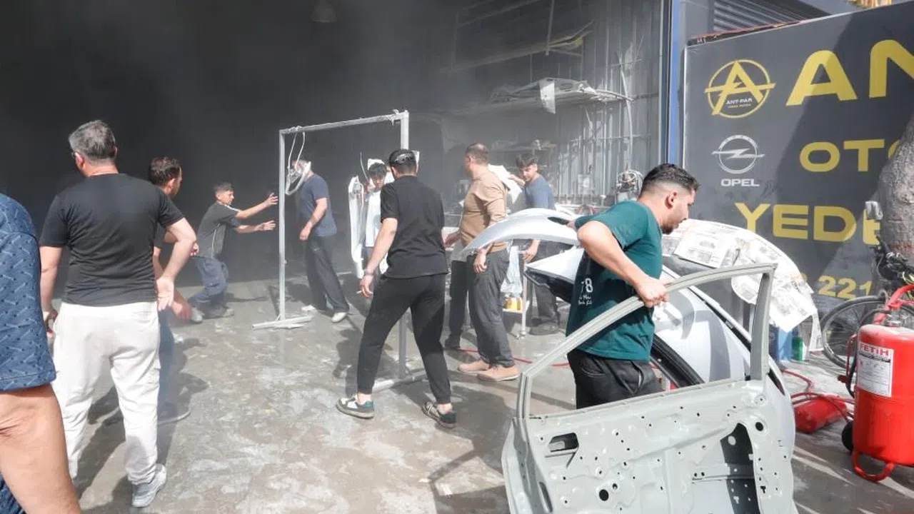 Yangına ilk müdahale eden İsmail Güneş, “Çatıya çıkıp söndürmeye çalıştık. Araçları dışarı çıkardık ama başaramadık. İçeride boya ve tiner gibi yanıcı malzemeler vardı. Maddi zarar büyük,” dedi.
