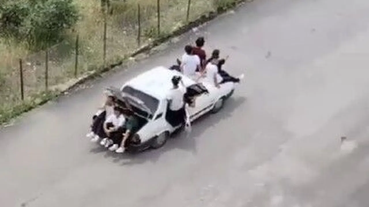 Olay, Özgür Mahallesi'nde meydana geldi. Bir vatandaşın cep telefonu ile kaydettiği görüntülerde, otomobilin bagajı ve kaputu çocuklarla doluydu. Araçta yer bulamayan bazı çocuklar, açık kapılardan sarkarak ilerledi.