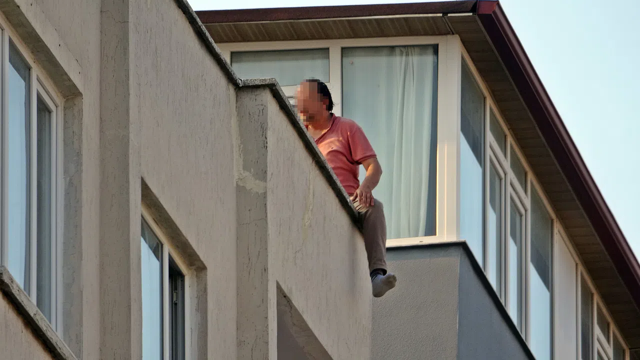 Bahadır T. zaman zaman çatıdaki korkuluklara çıkıp tehlikeli hareketlerde bulunurken, mahalleliler ise olan biteni meraklı gözlerle izledi.