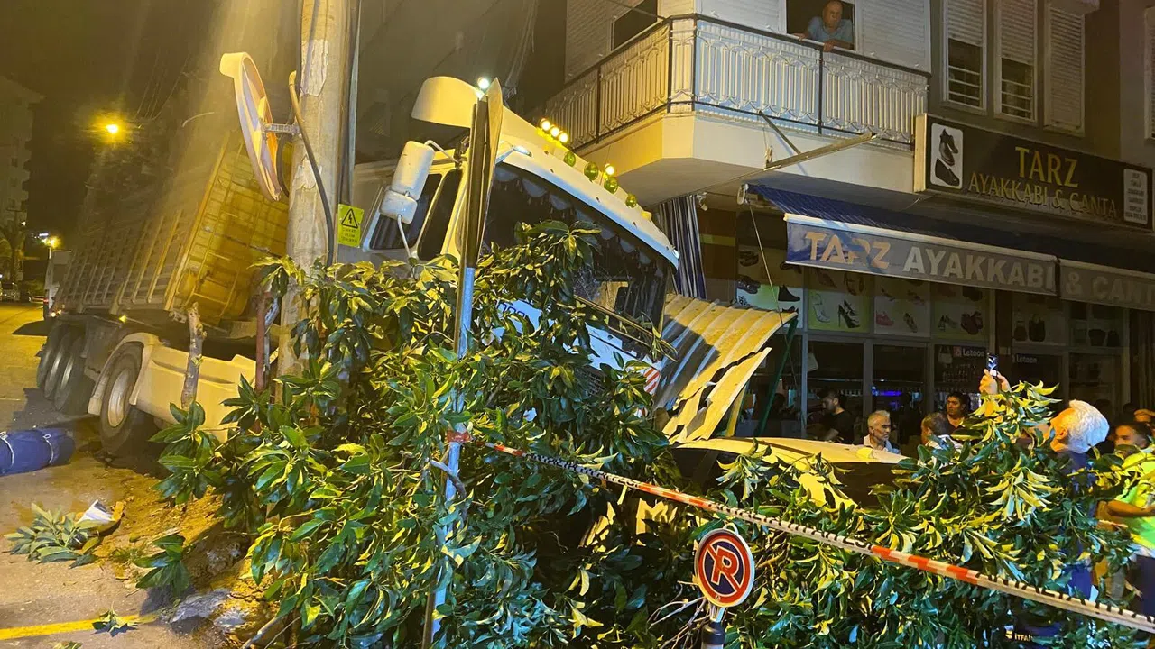 Antalya'nın Alanya ilçesinde freni boşalan odun yüklü tır kontrolden çıkarak yolun kenarında park halindeki 2 araca çarparak durabildi.