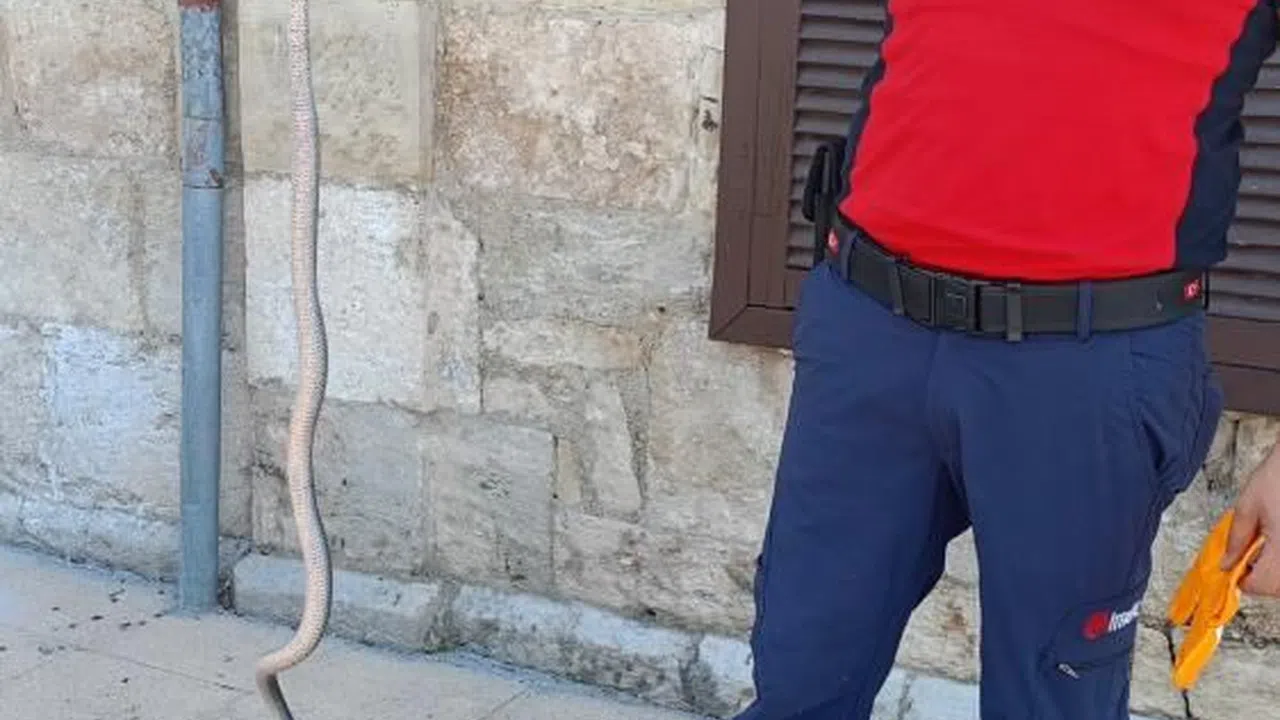 Hastane bahçesinde ağaçta boz yılanı fark eden çevredeki vatandaşlar durumu Mersin Büyükşehir Belediyesi itfaiye ekiplerine bildirildi. Ekipler tarafından yakalanan yılan, daha sonra doğal ortamına salındı.