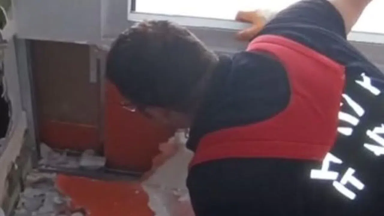 Hatay'da havalandırma boşluğuna düşen kedi duvar kırılarak kurtarıldı