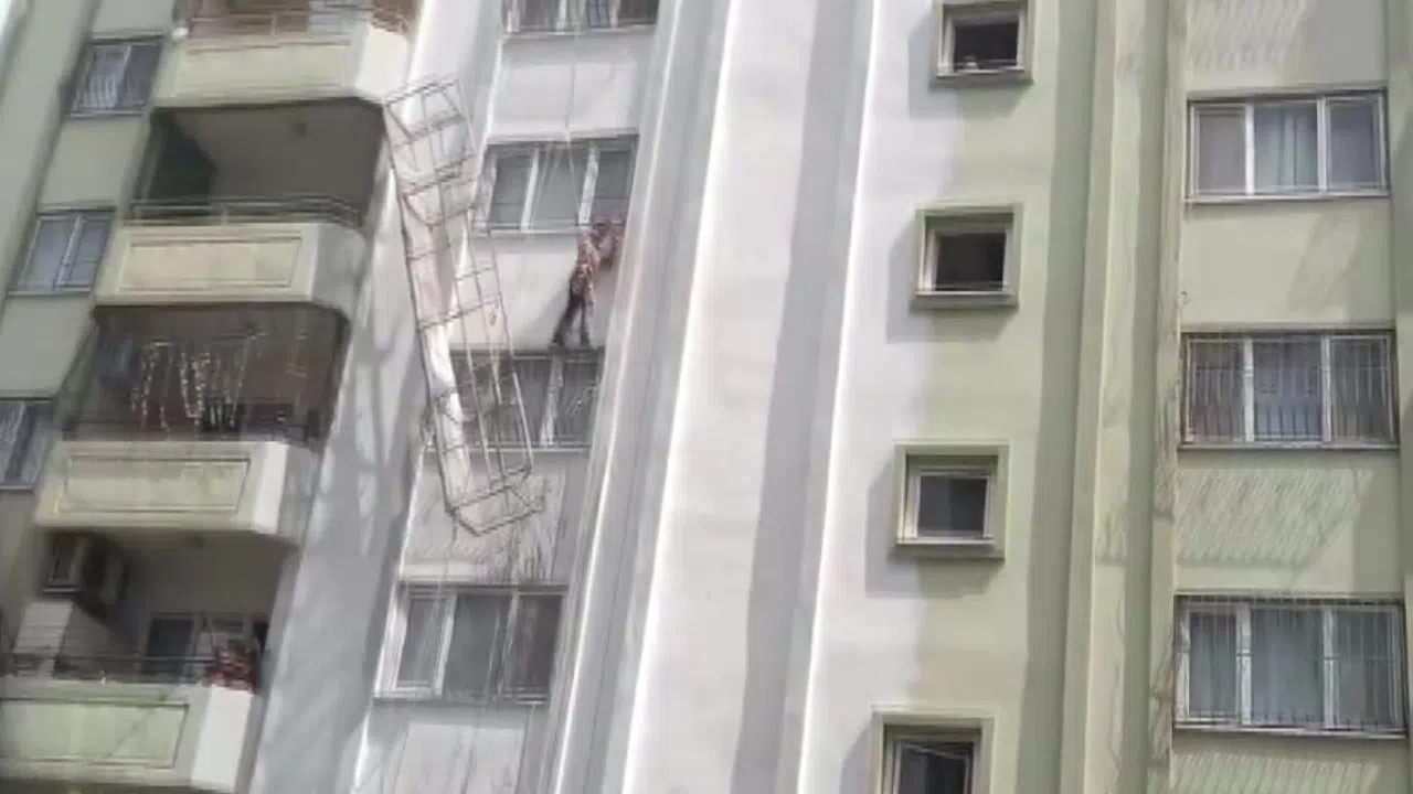 Adana'da cephe boyası yapan işçi, iskelenin halatının kopmasıyla metrelerce yüksekte asılı kaldı. Korku dolu anlar cep telefonu kamerasına yansırken, itfaiye ek...