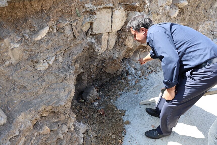 İhbar üzerine bölgede inceleme ve kazı yapan uzman ekip, tarihi olduğu değerlendirilen kemer kalıntısı ve tünel girişine ulaştı.