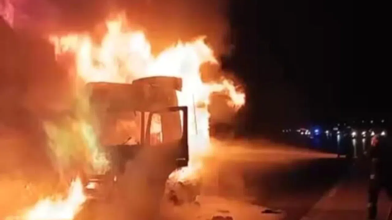 Kahramanmaraş'ta seyir halindeki tır, alev alev yanarak kullanılamaz hale geldi.