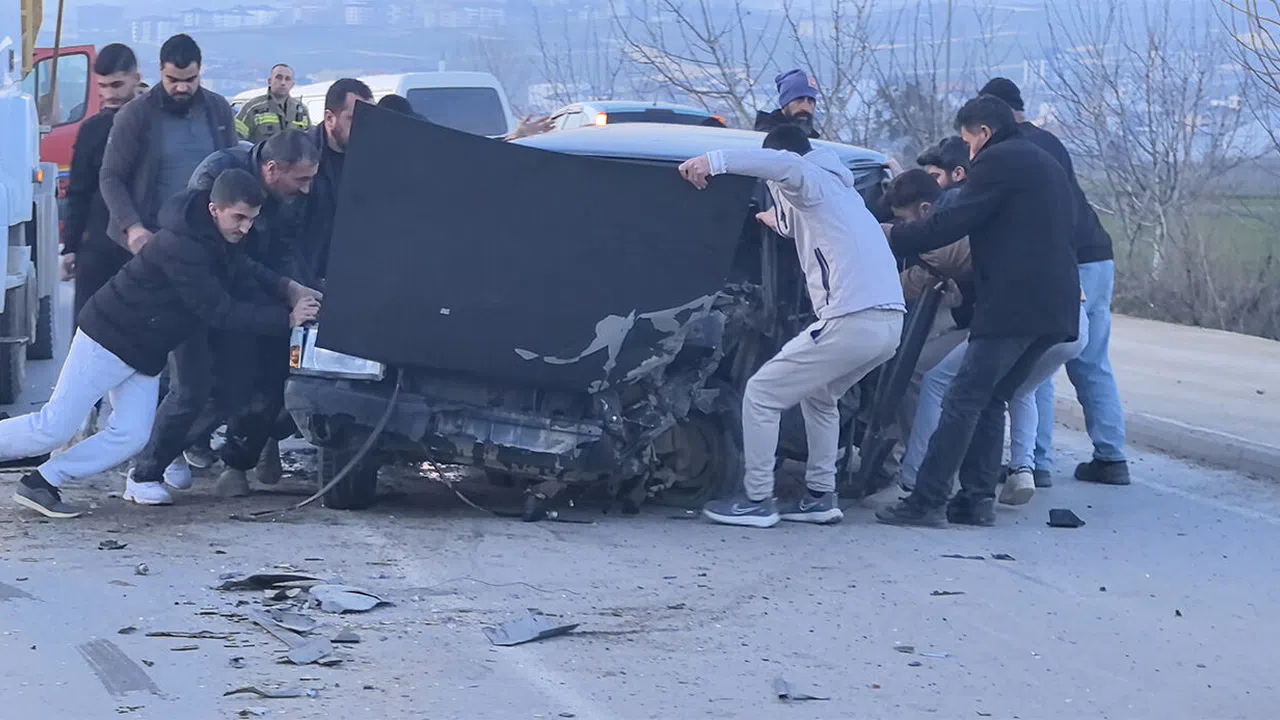 Bursa’nın İnegöl ilçesinde kamyonla kafa kafaya çarpışan otomobilde sıkışan sürücü, çevredeki vatandaşlar tarafından sıkıştığı yerden kurtarıldı.