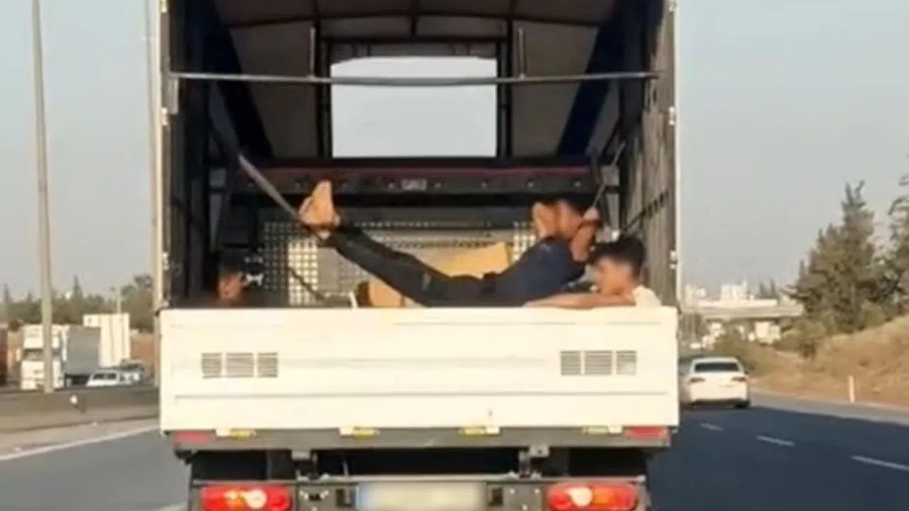 Adana’da iki farklı kamyonette yolculuk yapan vatandaşların tehlikeli ve ilginç anları objektiflere yansıdı. Biri kendini iple kasaya bağlarken, diğeri kurduğu hamakta yolculuk yaptı.
