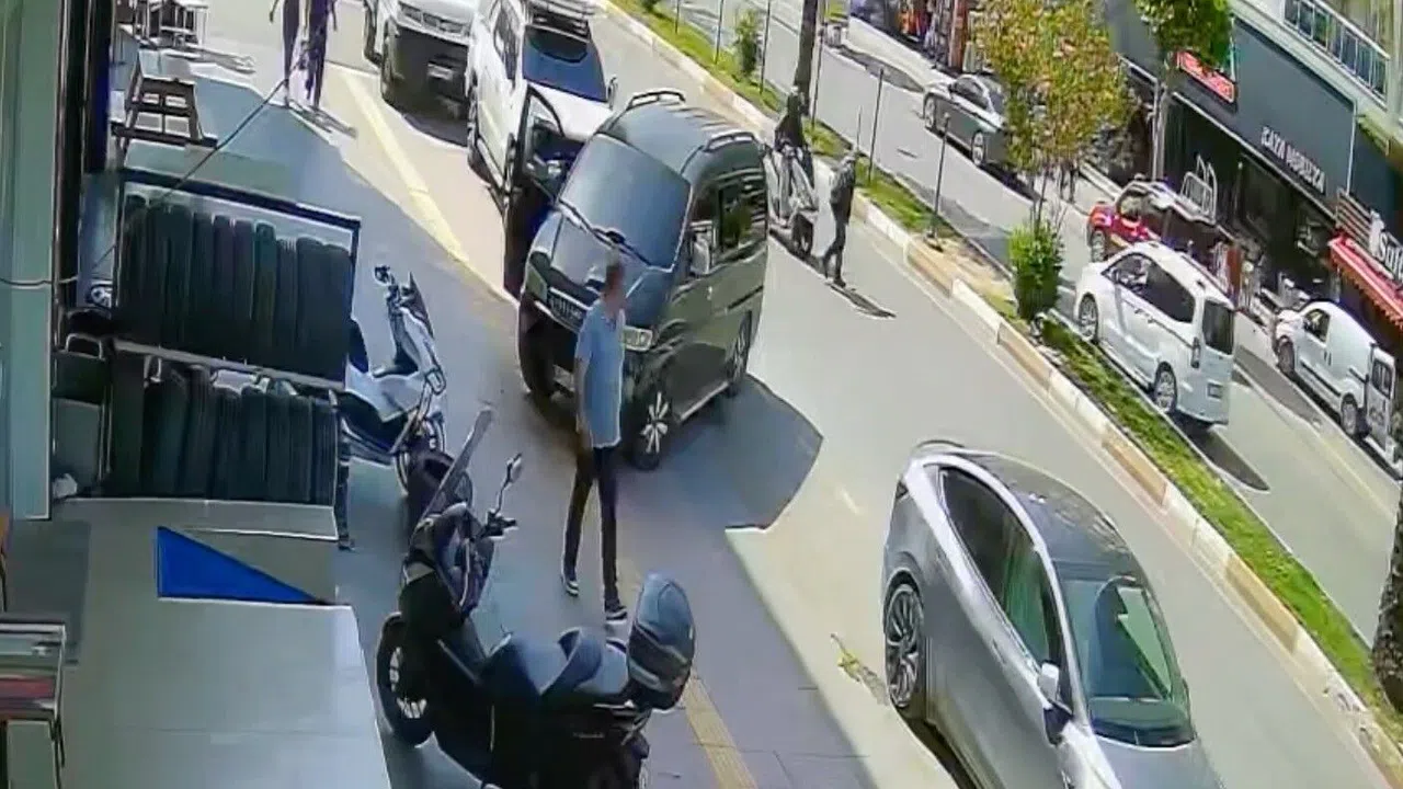 Aynı caddede ikinci kaza oldu. Burcu Özden’in motosikleti, aniden çıkan kamyonete çarpmamak için devrildi.