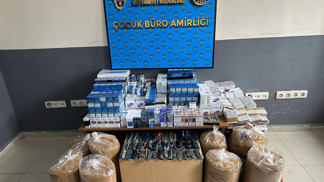 Hatay Emniyet Müdürlüğü görevlilerince, İskenderun’da okul çevresinde bulunan ve öğrencilere tek dal (açık sigara), paket halinde sigara, elektronik sigara satan şahıslara yönelik yapılan çalışmalar kapsamında Dumlupınar Mahallesinde bulunan bir iş yerinde yapılan aramada; çok sayıda gümrük kaçağı sigara, elektronik sigara, bıçak, satışa hazır paketlenmiş tütün, kıyılmış faturasız tütün ele geçirildi.