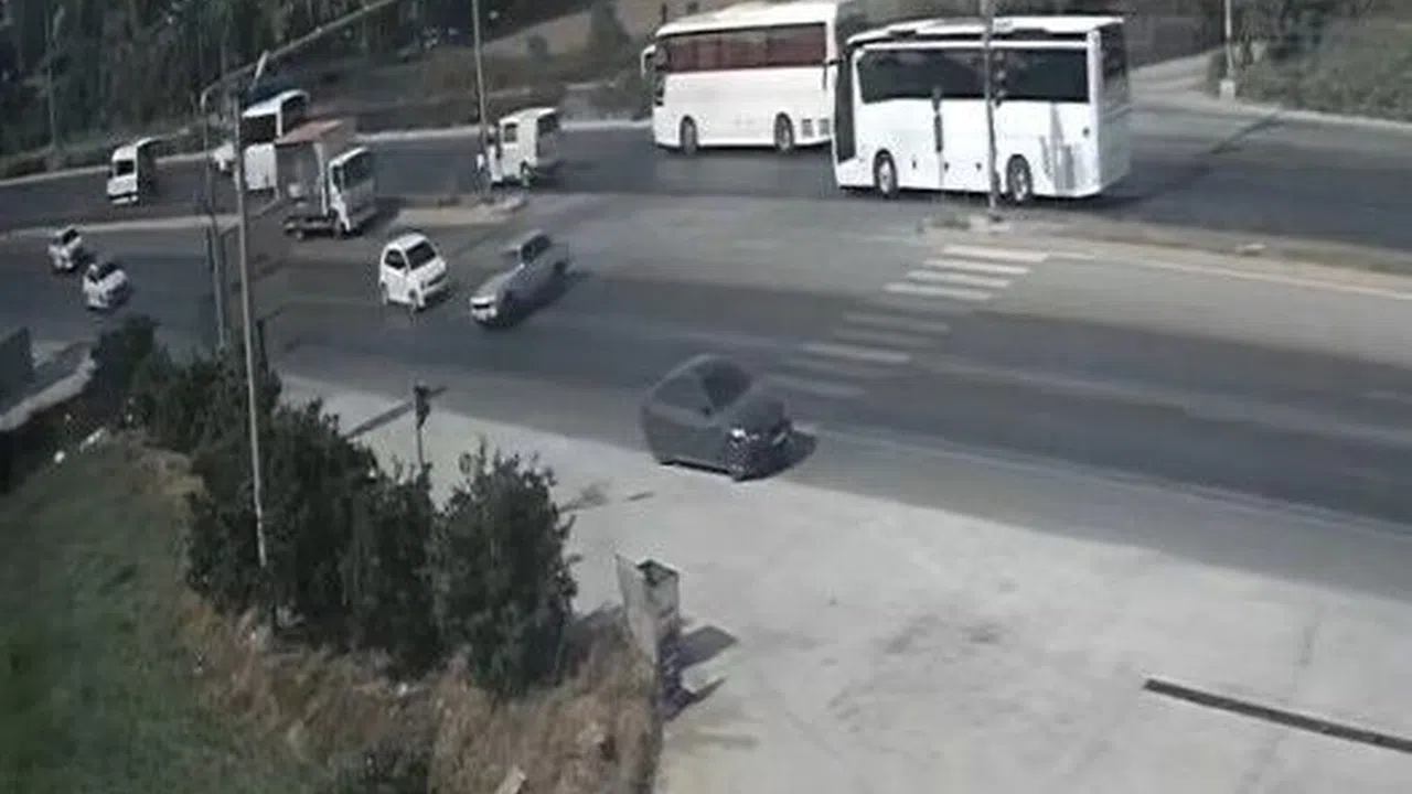 Güvenlik kamerasına yansıyan görüntülerde, seyir halindeki otomobilin, aniden dönüşe geçen araca çarptığı, çarpmanın etkisiyle aracın dönerek yol dışına çıktığı ve arkadan gelen başka bir otomobilin de yol kenarındaki bir tesise manevra yaptığı görüldü.