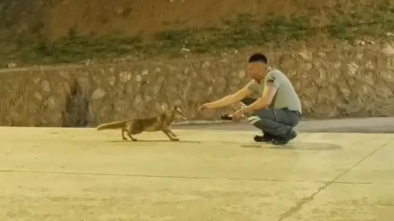 Adana’nın Tufanbeyli ilçesinde özel güvenlik görevlisi yanına gelen tilkiyi kendi eliyle besliyor.