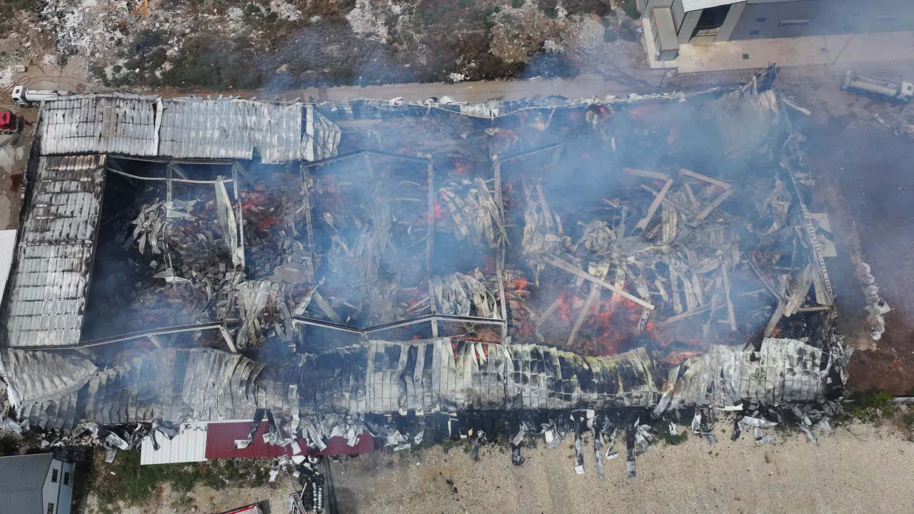 Yangının meydana geldiği depodaki son durum ise dron ile havadan görüntülendi.