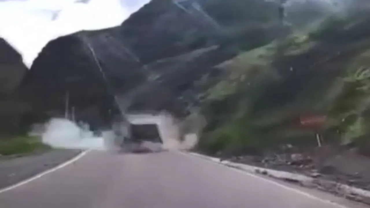 Peru'nun San Mateo bölgesindeki bir dağlık alanda heyelan meydana geldi. Yamaçtan düşen kaya parçası, bir kamyona isabet etti. Kamyon kağıt gibi ezilirken, şoför faciadan kurtuldu. Korku dolu anlar arkadan gelen diğer kamyonun kamerasına yansıdı. Başka bir dev kaya parçası ise yola isabet etti, büyük hasar meydana geldi. Yol trafiğe kapatılırken, bölgedeki temizleme çalışmaları 4 saat sürdü.