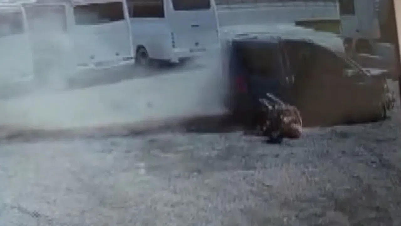 Kazanın güvenlik kamerasına yansıyan görüntülerinde, çarpışma anı saniye saniye kaydedildi. Araçta bulunan bir kadının son anda kendini dışarı atarak kurtulduğu anlar, izleyenlerin yüreğini ağza getirdi.