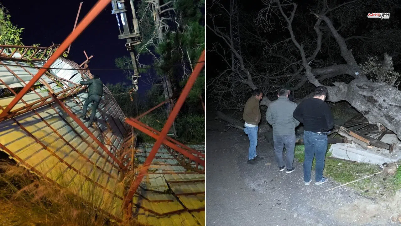Mersin'in Erdemli ilçesinde etkili olan şiddetli rüzgar, ardında dikkat çekici hasarlar bıraktı. Karayakup Mahallesi'nde rüzgarın şiddetiyle boş bir evin çatısı tamamen yerinden söküldü ve metrelerce uzağa savrularak bir çam ağacının üzerine düştü.