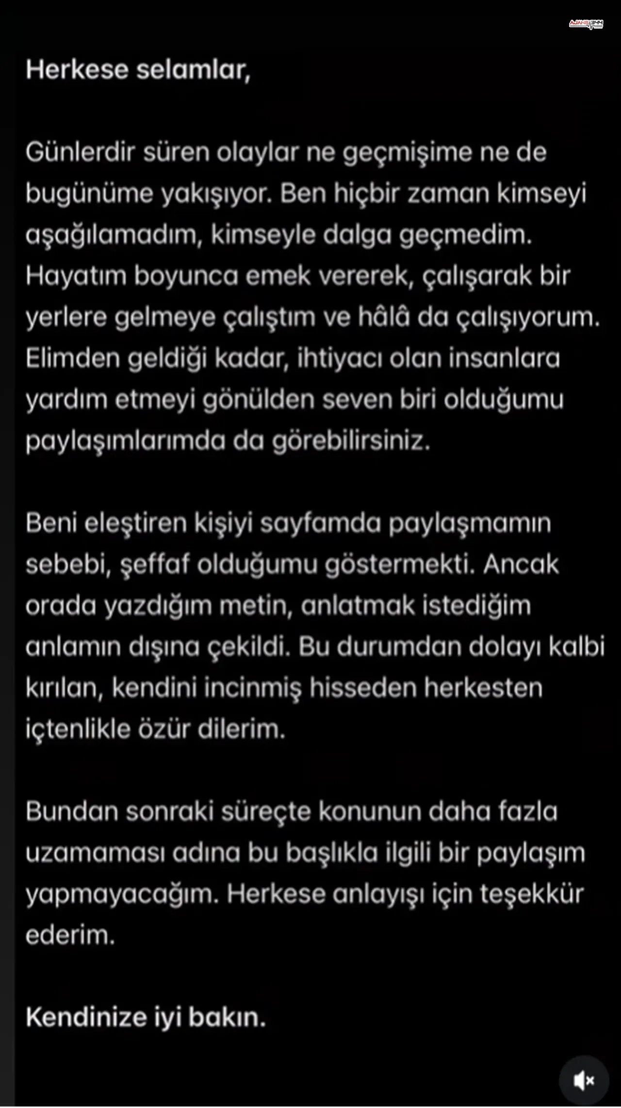 Tartışmaların büyümesi üzerine Bedri Usta, kişisel sosyal medya hesabından bir açıklama yayımlayarak özür diledi. Paylaşımının yanlış anlaşıldığını belirten Aydoğdu, kimseyi incitme niyeti taşımadığını ifade etti ve konunun daha fazla uzatılmayacağını söyledi.