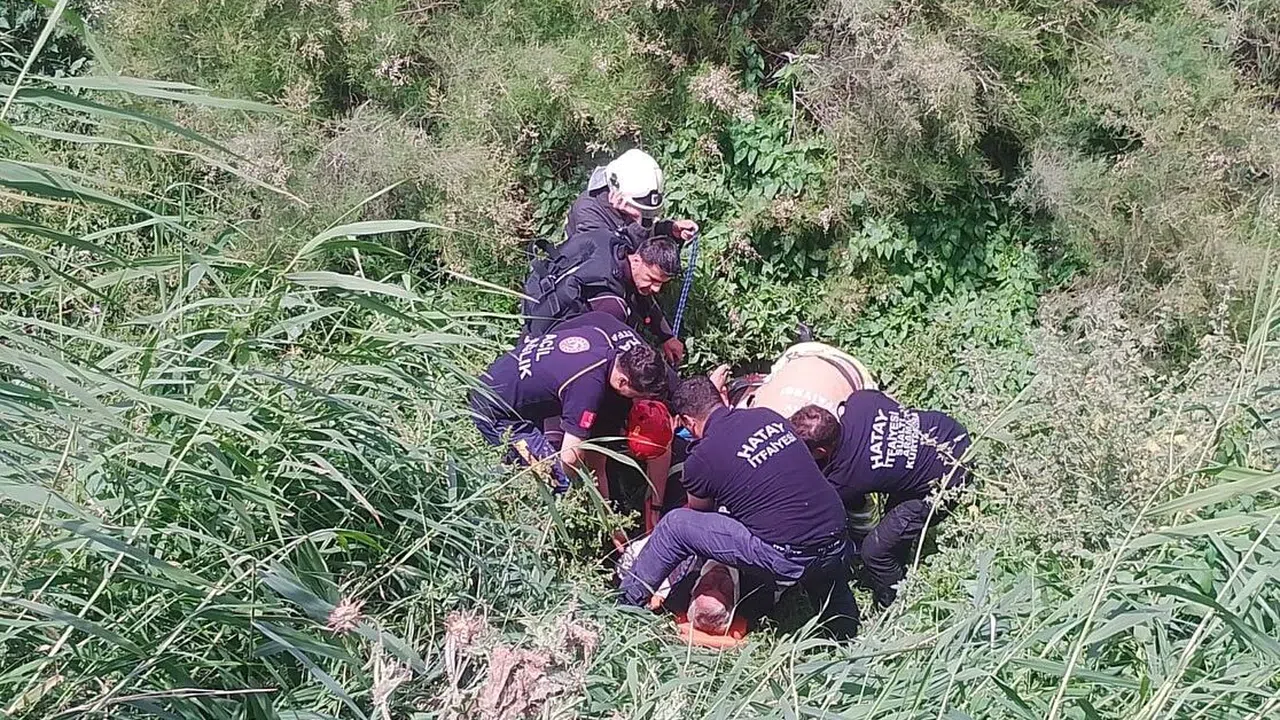 Motosiklet sürücüsü, direksiyon kontrolünü kaybetti. Araç, Asi Nehri yatağına düştü.