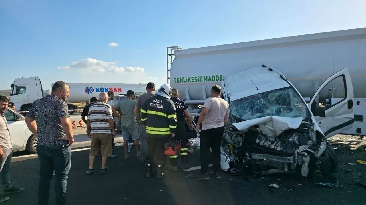 Hatay’da otoyolda meydana gelen kazada hafif ticari aracın tankerle çarpışması sonucu üç kişi yaralandı. Kaza, sabah saatlerinde İskenderun-Adana otoyolu üzerindeki serbest bölge mevkisinde yaşandı. Seyir halinde olan FİA marka hafif ticari araç, henüz belirlenemeyen bir nedenle aynı istikamette ilerleyen tankerle çarpıştı. Çarpışmanın etkisiyle ticari araç hurdaya dönerken, çevredeki sürücüler kazayı görüp durumu hemen 112 Acil Çağrı Merkezi’ne bildirdi.