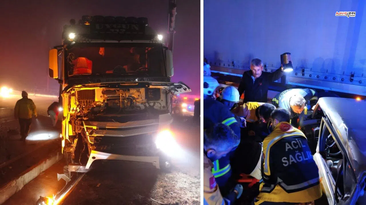 Kaza sonrasında otomobilde sıkışan sürücü ve yolcu, olay yerine gelen itfaiye ekipleri tarafından yapılan müdahale ile araçtan çıkarıldı. Tır sürücüsü de aynı kazada yaralandı.