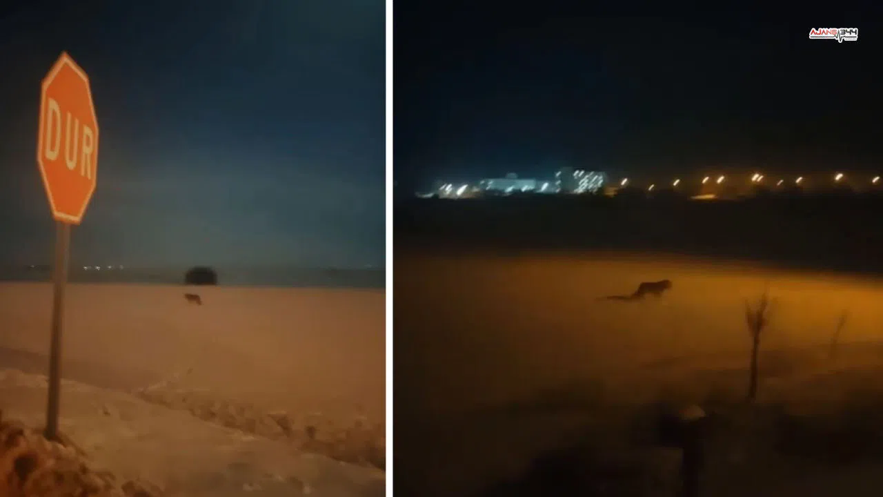 Kahramanmaraş’ta akşam saatlerinde yaşanan olay, bölgede kısa sürede tedirginliğe neden oldu. Bir vatandaş, akşam saatlerinde yolda kurt gördüğünü belirterek durumu hem cep telefonu kamerasıyla kayıt altına aldı hem de sosyal medya üzerinden çevre sakinlerini uyardı.