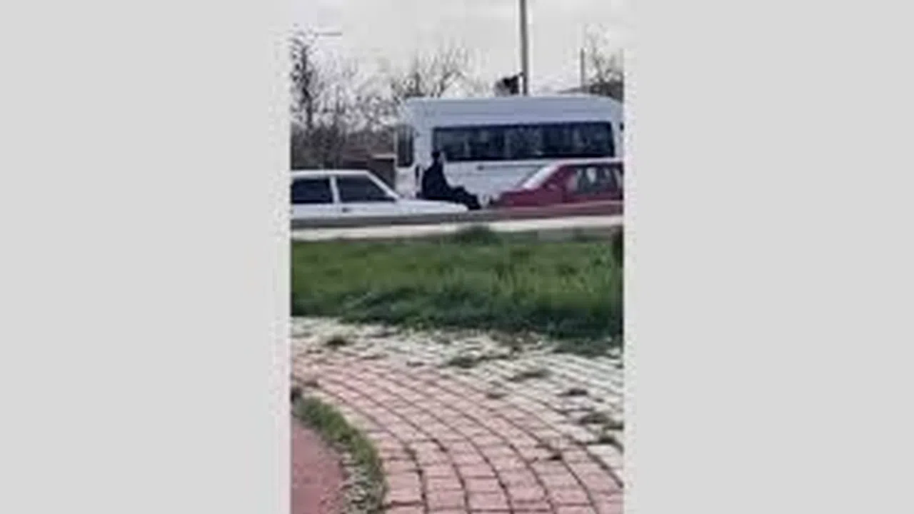 Görüntülerde olayın yaşandığı sırada, kaputta oturan kişinin hiçbir güvenlik önlemi almadan ve oldukça tehlikeli bir şekilde hareket ettiği görüldü. Kaput üzerindeki kişinin, adeta bir halat gibi araç ile önündeki aracı hareket ettirdiği görüldü.