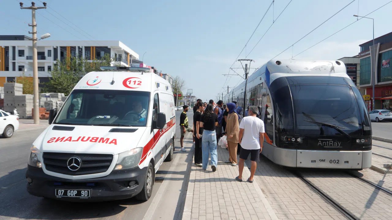 Antalya'da yolun karşı tarafına geçmek isterken tramvayın çarptığı genç kız hafif yaralandı.
