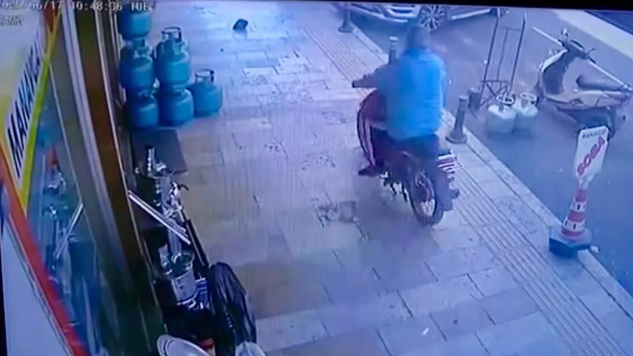 Antalya'nın Manavgat ilçesinde motosikletli 1 kişi, tüpçü dükkanının önünde bulunan tüpü alarak gitti. O anlar güvenlik kamerasına yansırken iş yeri sahibi şika...