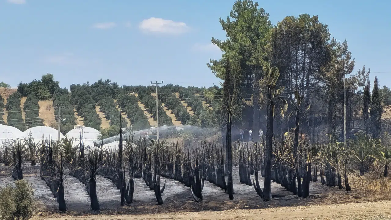 Aksu ilçesine bağlı Kurşunlu Mahallesi Hacılar mevkii Mehmet Akif Caddesi'nde meydana gelen yangın, bölge sakinlerini korkuttu. Yangında zeytinlik ve palmiye ağaçları zarar görürken, rüzgarın etkisiyle alevler çevredeki seralara sıçradı. İlk belirlemelere göre 3 naylon serada hafif hasar meydana geldi. Ayrıca bölgede bulunan bir çadır içindeki malzemeler de yandı.