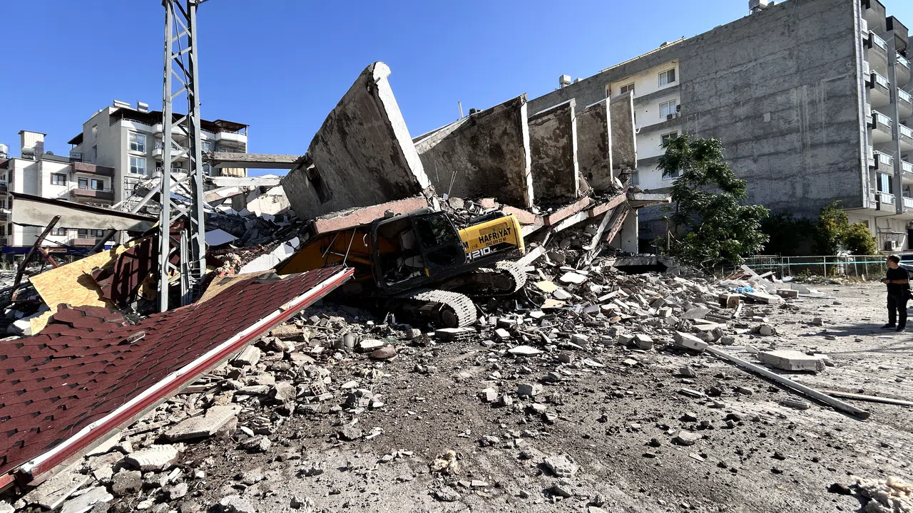 Depremin yaralarının sarıldığı Hatay'da mahkeme süreci sona eren binaların yıkımları ve enkaz kaldırma çalışmaları sürüyor. Arsuz ilçesi Şarkonak Mahallesi'nde depremlerde hasar alan ve mahkeme süreci tamamlanan 7 katlı bina, kontrollü olarak yıkılmak istendiği esnada yıkım sırasında iş makinesinin üzerine devrildi. Yaralı olarak kurtarılan operatör olay yerindeki ilk müdahalenin ardından hastaneye sevk edildi. Binanın iş makinesinin üzerine devrildiği anlar kameraya yansırken, operatörün hayati tehlikesinin olmadığı öğrenildi.