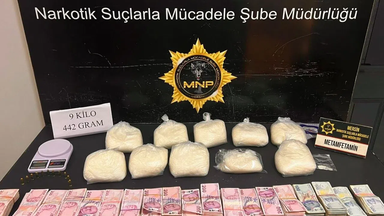 Alınan bilgiye göre, İl Emniyet Müdürlüğü Narkotik Suçlarla Mücadele Şubesi ekipleri, uyuşturucu ile mücadele çerçevesinde çalışma yaptı. Ekiplerin yaptığı hassas, titiz ve takipli çalışmalar neticesinde uyuşturucu madde ticareti yapan şüpheli K.A. belirlendi. Belirlenen şüpheliyi takip eden ekipler evine operasyon düzenledi. Şüpheli operasyonda yakalanarak gözaltına alınırken evinde yapılan aramada 9 kilo 442 gram metamfetamin, hassas terazi, çok sayıda tabanca fişeği ve uyuşturucu madde ticaretinden elde edildiği değerlendirilen 375 bin 800 TL ele geçirildi. Uyuşturucu Madde Ticareti Yapmak suçundan emniyette ifadesi alınacak olan şüphelinin daha sonra adliyeye sevk edileceği bildirildi.