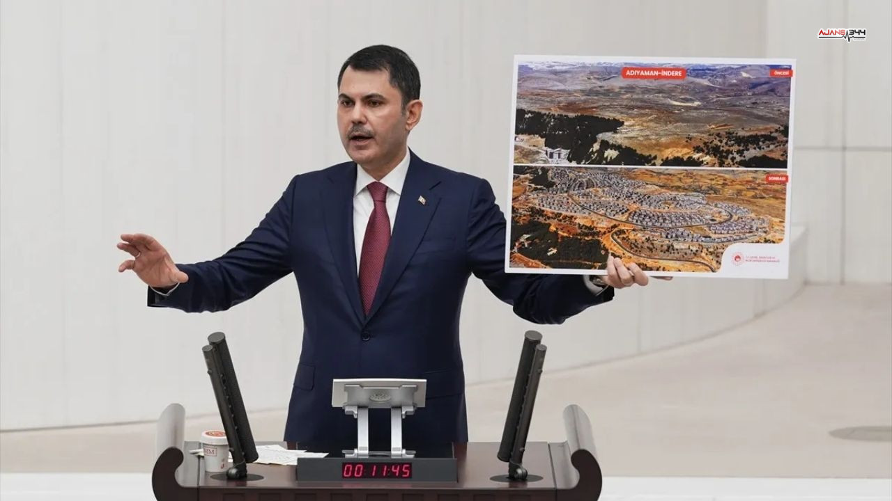 Çevre, Şehircilik ve İklim Değişikliği Bakanı Murat Kurum, TBMM’de 2026 yılı bütçe görüşmelerinde deprem bölgesinde yürütülen çalışmaları etkileyici bir şekilde anlatan Kurum, deprem bölgesinde başlatılan seferberliğin sonuçlarını “Asrın felaketini Asrın İnşası’na dönüştürdük” diyerek yeniden ayağa kalkan şehirlerin son durumunu fotoğraflarla anlattı.