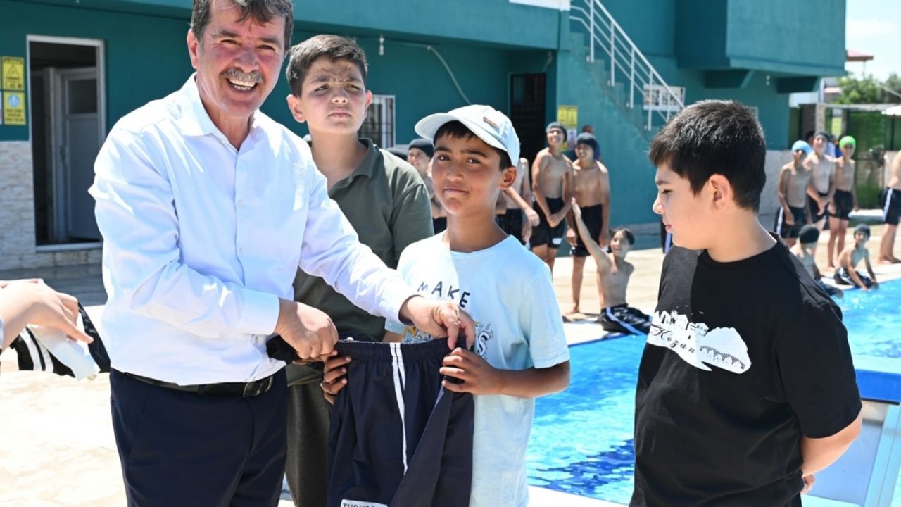 Belediye Başkanı Osman Okumuş; Beyoğlu Yüzme Havuzu,Şekeroba Yüzme Havuzu,Türkoğlu Merkez Yüzme Havuzu ve Kılılı Yüzme Havuzunda gerçekleşen etkinlikte büyük afetin küçük tanıklarını mutlu edip, moral ve motivasyonlarını arttırarak, spora teşvik etmek için yüzerken kullanabilecekleri şort ve boneleri hediye etti.