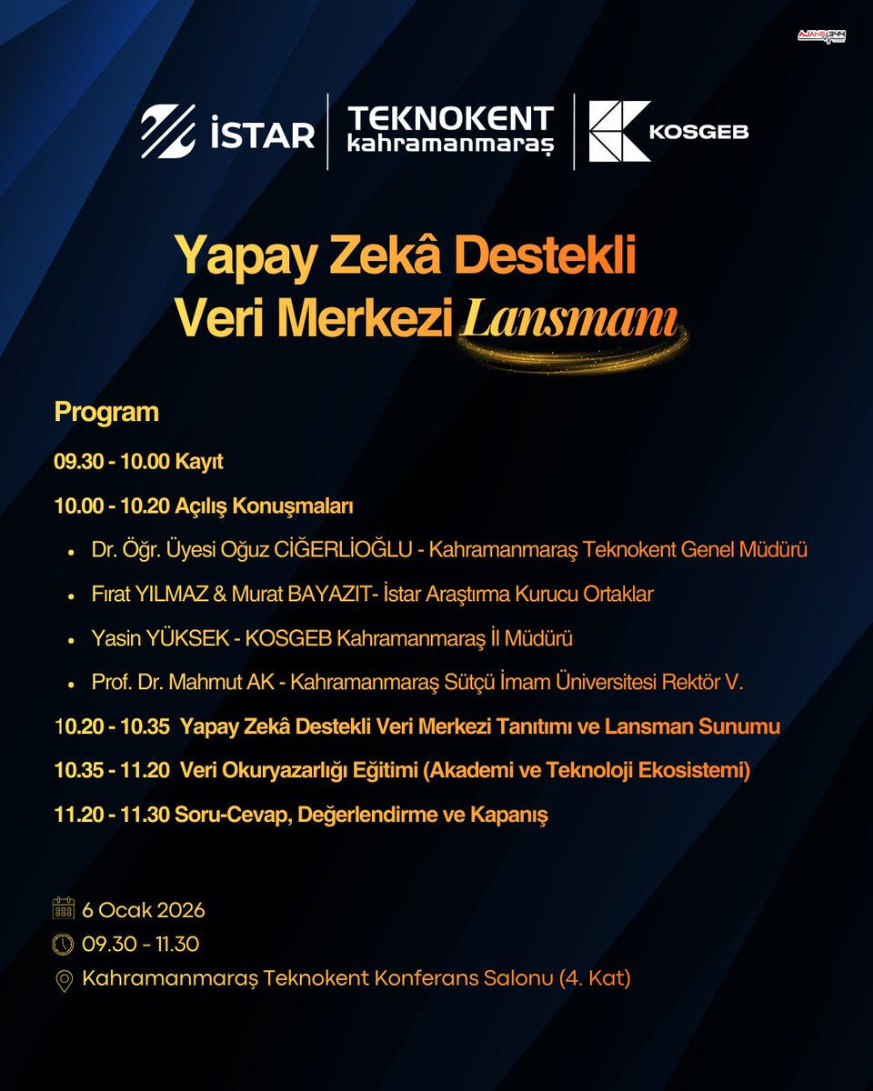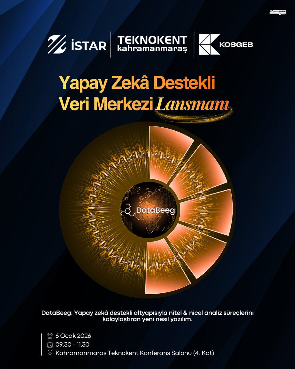 İSTAR tarafından geliştirilen ve KOSGEB desteğiyle hayata geçirilen DataBeeg’in lansmanı, 6 Ocak 2026 Salı günü saat 09.30–11.30 arasında gerçekleştirilecek. Etkinlik, Kahramanmaraş Teknokent Konferans Salonu’nda yapılacak.