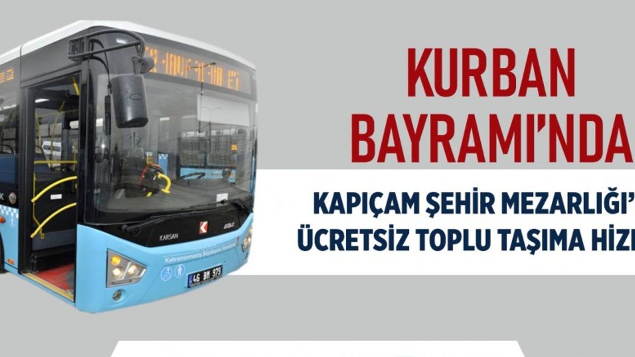 Kurban Bayramı boyunca belediyeye ait 30/C, 32/B, 34/B, 36/B, 37/B, 39/B, 60, 62 ve 69/B numaralı hatlarda vatandaşlara ücretsiz toplu taşıma hizmeti sunacak olan Kahramanmaraş Büyükşehir Belediyesi, ahirete irtihal eden yakınlarını kabirleri başında ziyaret etmek isteyen vatandaşların Kapıçam Şehir Mezarlığı’na ulaşımını sağlamak için ücretsiz toplu taşıma seferleri düzenleneceğini duyurdu. 28 Haziran Çarşamba günü başlayacak uygulama, bayram süresince devam edecek. 30’ar dakikalık aralıklarla Necip Fazıl Kısakürek Kültür Merkezi’nden hareket edecek otobüsler; Derepazarı – Şelale – Eski İtfaiye – Sanayi ve Gaziantep Yolu güzergâhını takip ederek Kapıçam Şehir Mezarlığı’na ulaşım sağlayacak. Büyükşehir Belediyesi’nden yapılan açıklamada; Kapıçam Şehir Mezarlığı’na ulaşım sağlayacak otobüslerin hareket saatlerine https://kahramanmaras.bel.tr/toplu-tasima-guzergah-ve-saatleri internet adresi ve KahramanKart mobil uygulaması üzerinden ulaşılabileceği, toplu taşımaya ilişkin 0531 082 00 22 numaralı WhatsApp hattından bilgi alınabileceği belirtildi.