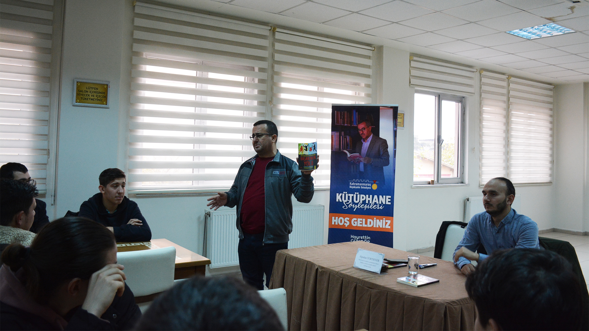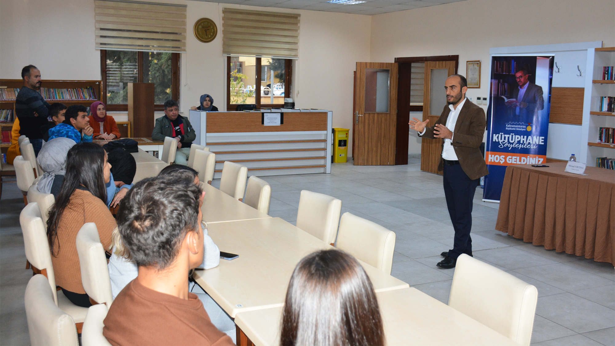 Şiir ve edebiyatın başkentinde kültür sanat faaliyetlerini kesintisiz sürdüren Kahramanmaraş Büyükşehir Belediyesinin Kütüphane Söyleşileri’nde birbirinden değerli şair ve yazarlar edebiyatseverlerle bir araya gelmeye devam ediyor.