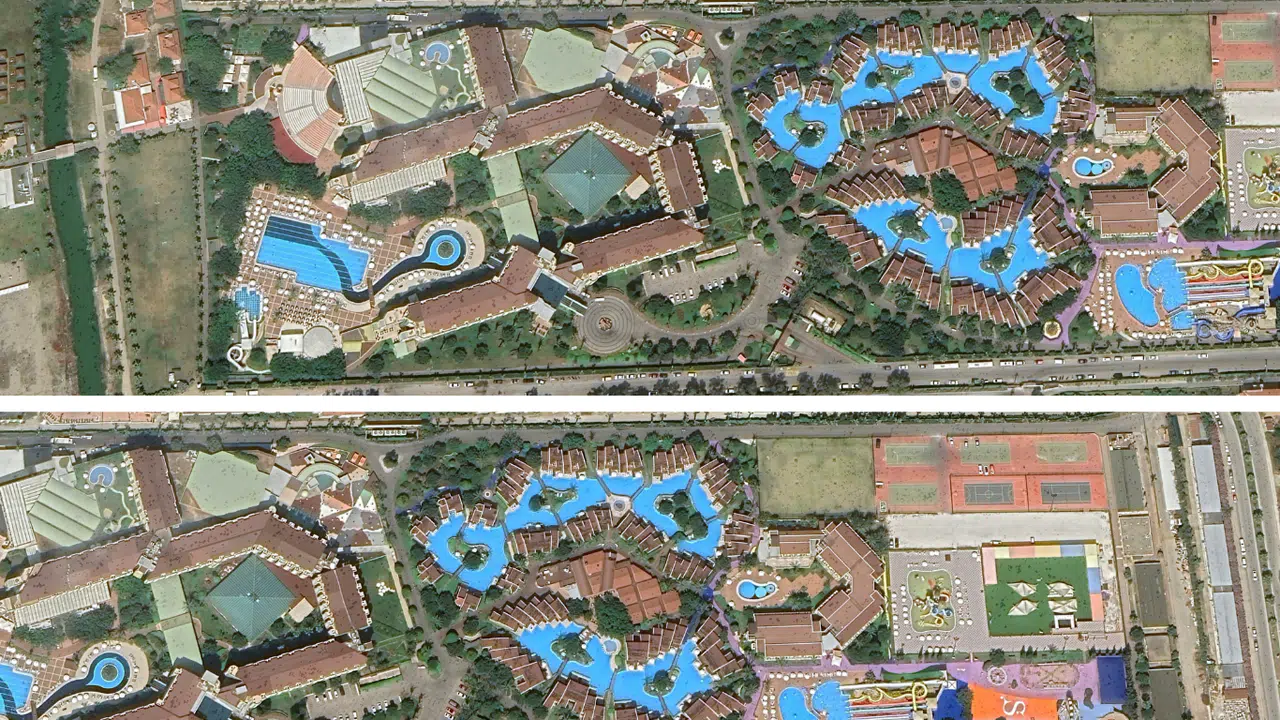 "Çim futbol sahalarının kaldırılarak mini club ve havuz yapıldığı, havuzun yan tarafında demir konstrüksiyondan bar alanı inşa edildiği; tenis kortlarının tamamen iptal edilerek açık otopark olarak kullanıldığı, amfi tiyatronun altının tamamen değiştirilerek mutfak ve soğuk hava deposu ve çöp deposu yapıldığı, tesisin ana mutfağında bazı duvarların yıkılarak alçıpan malzemelerle değişiklikler yapıldığı, mal kabul alanına asansör inşa edildiği, kapalı otoparkın bir kısmının ayrılarak personel yemekhanesi olarak kullanıldığı, sahile giden yola tuvaletler ve sökülebilir malzemelerden restoran yapıldığı ve bina altında bulunan poolbarın büyütüldüğü ve bina içerisindeki yapıların mevcut durumunun değiştirildiği anlaşılmıştır."