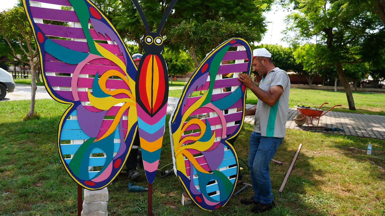 Erdemli Belediyesi Park ve Bahçeler Müdürlüğü ekipleri, kullanılmayan malzemeleri değerlendirerek birbirinden özgün eserler ortaya çıkarıyor. Okaliptus ve kavak ağaçları birleştirilerek yeni objeler oluşturulurken eski tabelalar sanatsal dokunuşlarla figürlere dönüşüyor. Kullanılmayan salıncaklar ve elektrikli tekerlekler faytonlara dönüşüyor. Ortaya çıkan bu eserler, kentin dört bir yanındaki park ve bahçelerde sergileniyor. Böylece hem çevre bilinci artırılıyor hem de kente estetik bir değer katılıyor.