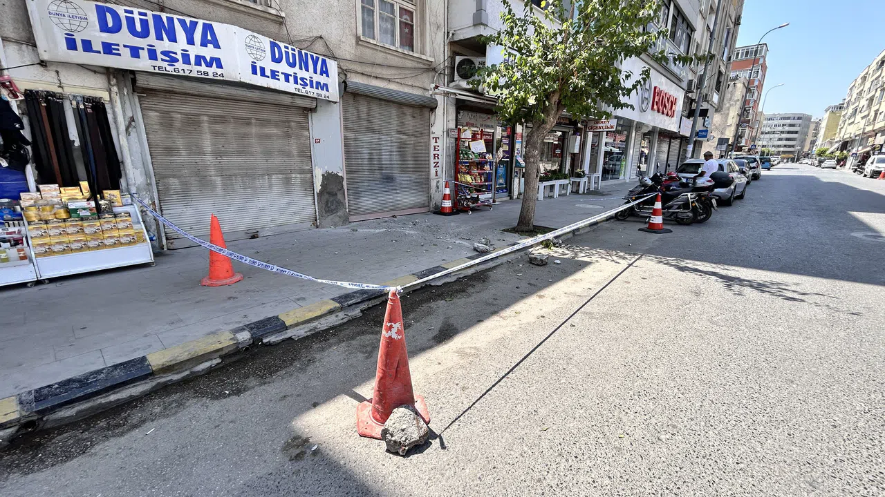 Hatay'ın İskenderun ilçesinde, eski bir binadan kopan taş parçaları kaldırıma düştü. Olayda yaralanan olmazken, zabıta ekipleri çevrede güvenlik önlemi aldı.